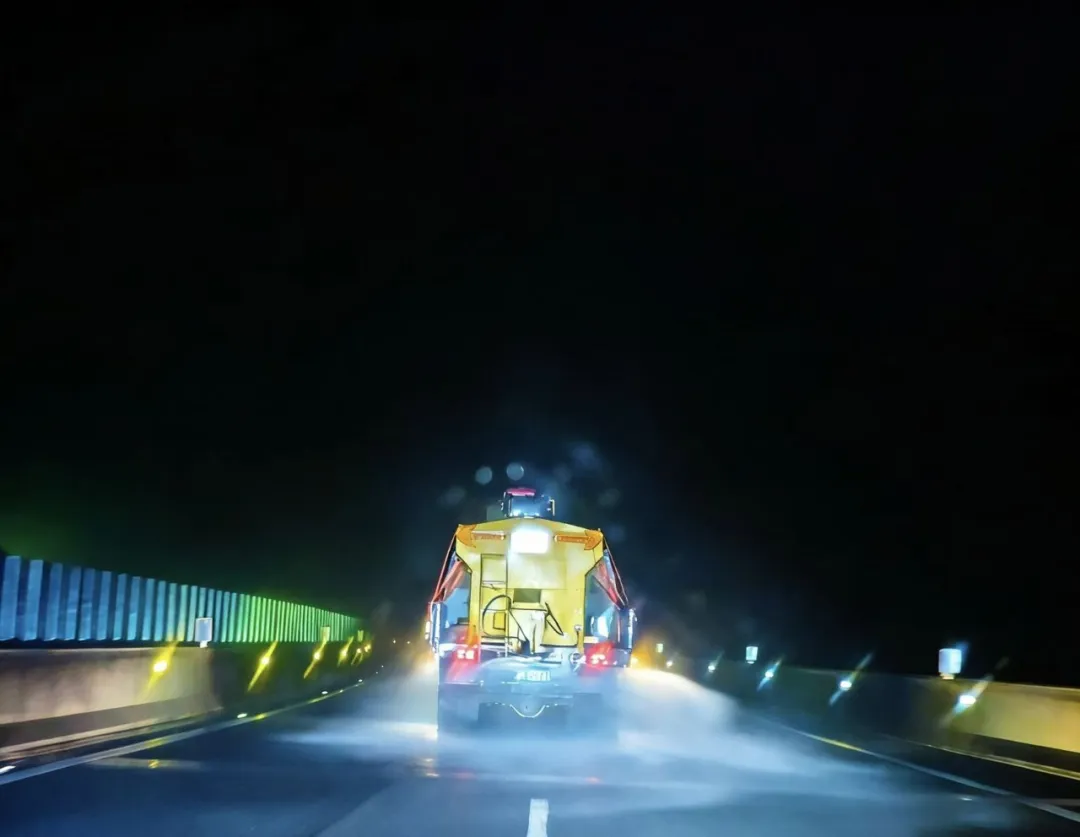 傍晚气温骤降,预防性撒布作业随即展开。自18时59分起,各大队联合高速交警及经营单位,对G76厦蓉高速、G56杭瑞高速、S55仁望高速、S82筑大高速等道路易凝冻路段,开展多轮次融雪剂撒布作业。作业持续至次日凌晨,有效延缓了路面结冰,为后续应对争取了主动。